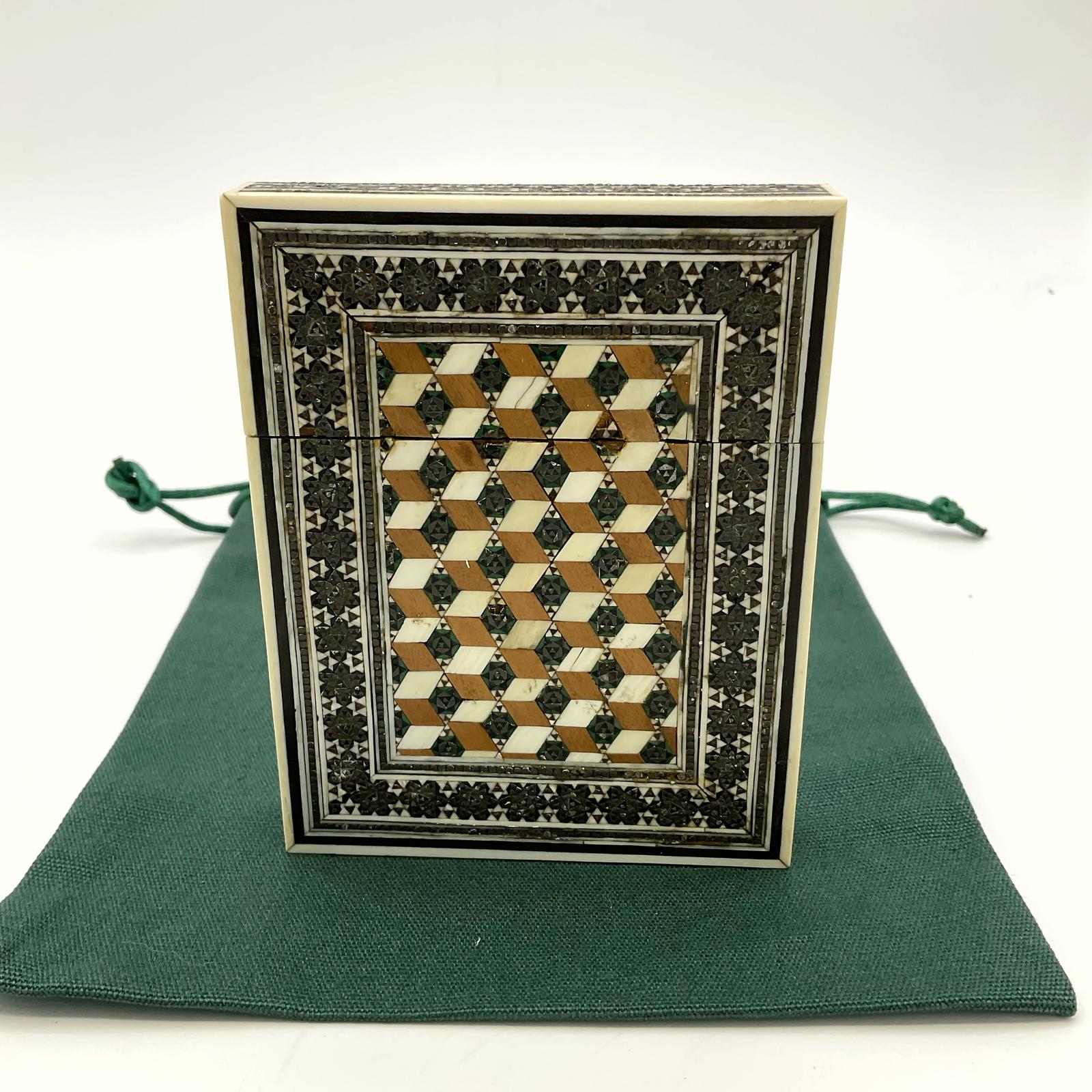 Antique Mosiac Wood Card Case - 1800s Sadeli Sandalwood
