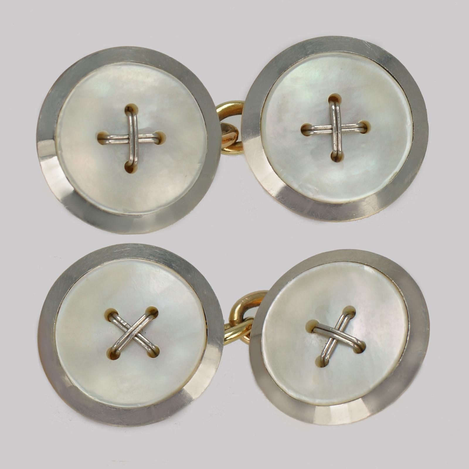 Antique Mother of Pearl 9ct Gold & Platinum Button Cufflinks Art Deco 1920s