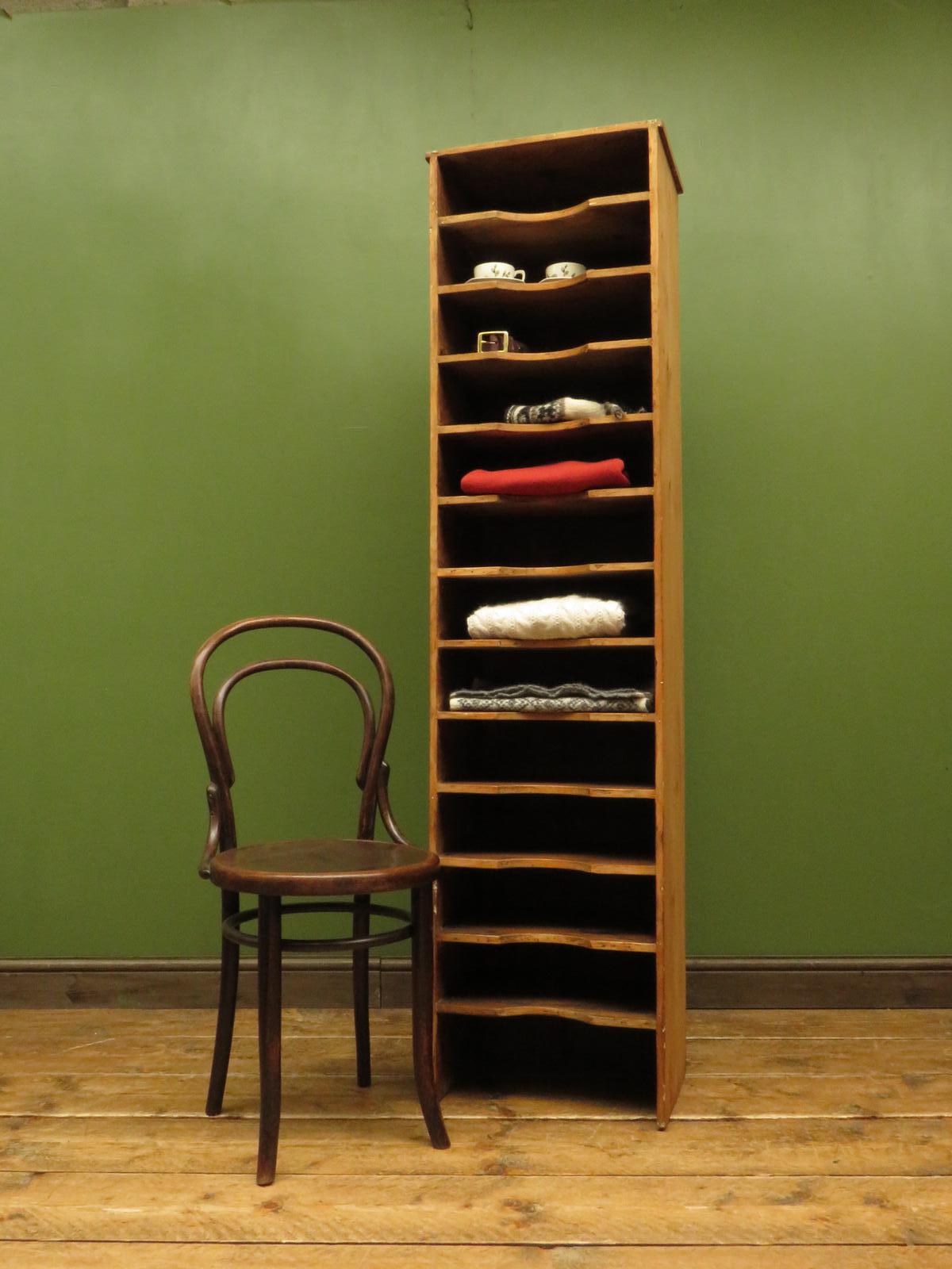 Antique Narrow Pine Pigeon Holes, Stationery or Haberdashery Display Shelves