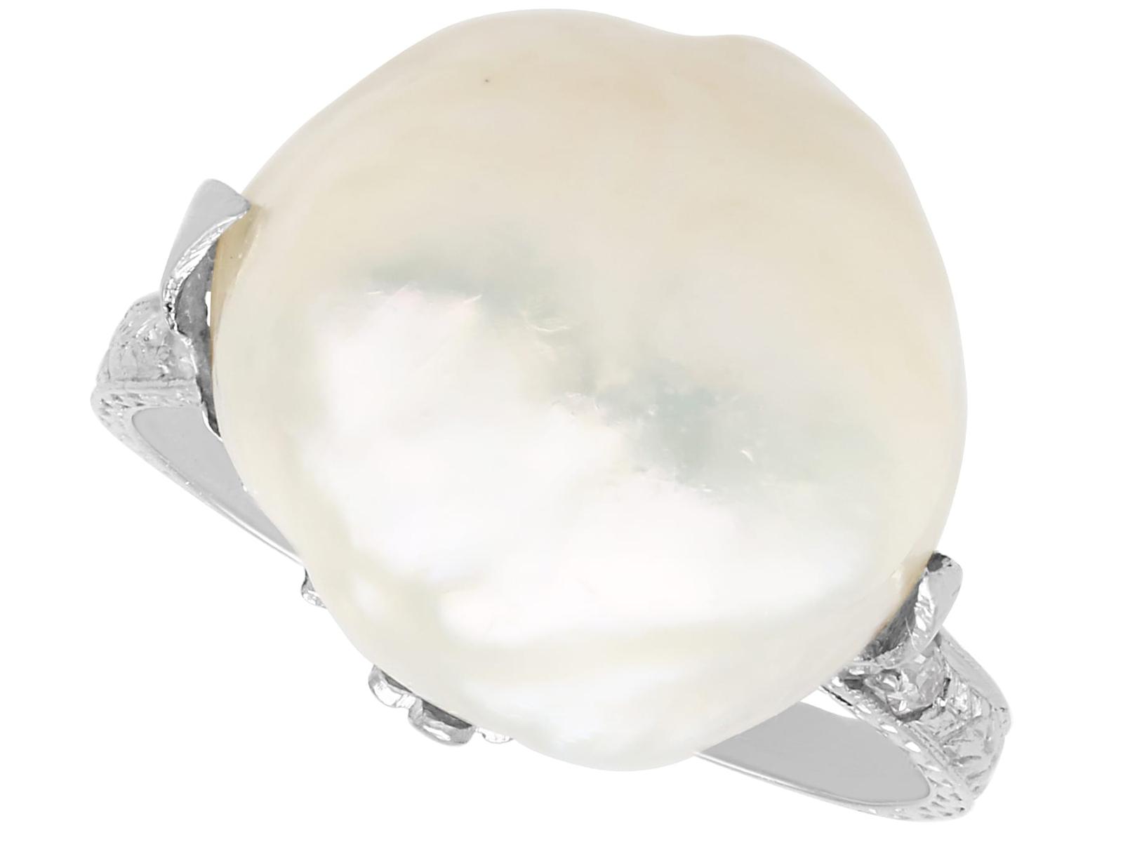 A stunning, fine and impressive, antique natural blister pearl and 0.13 carat diamond, platinum dress ring; part of our pearl jewellery collections.