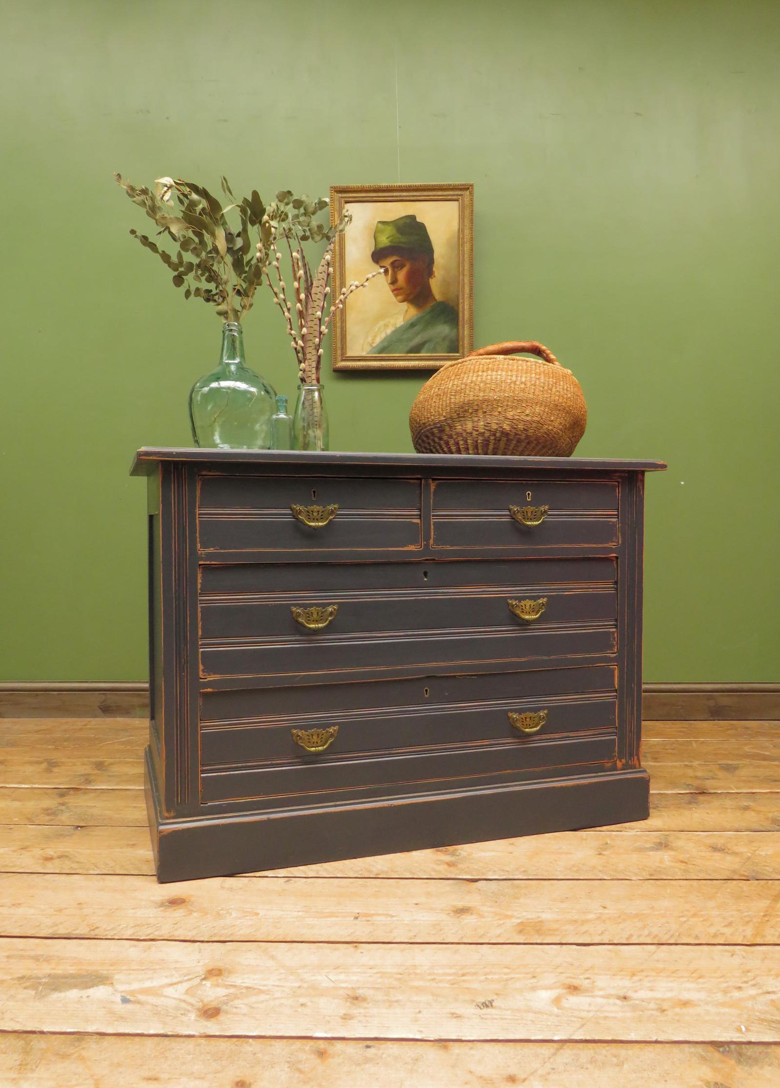 Antique Navy Blue Painted Chest of Drawers with Ornate Brass Handles