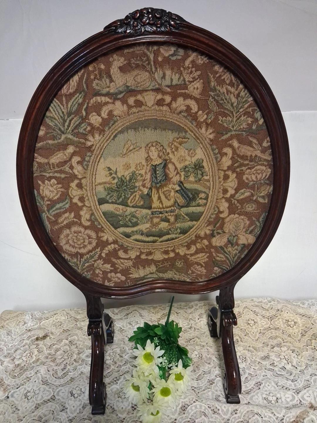 Antique Needlepoint Firescreen Tapestry