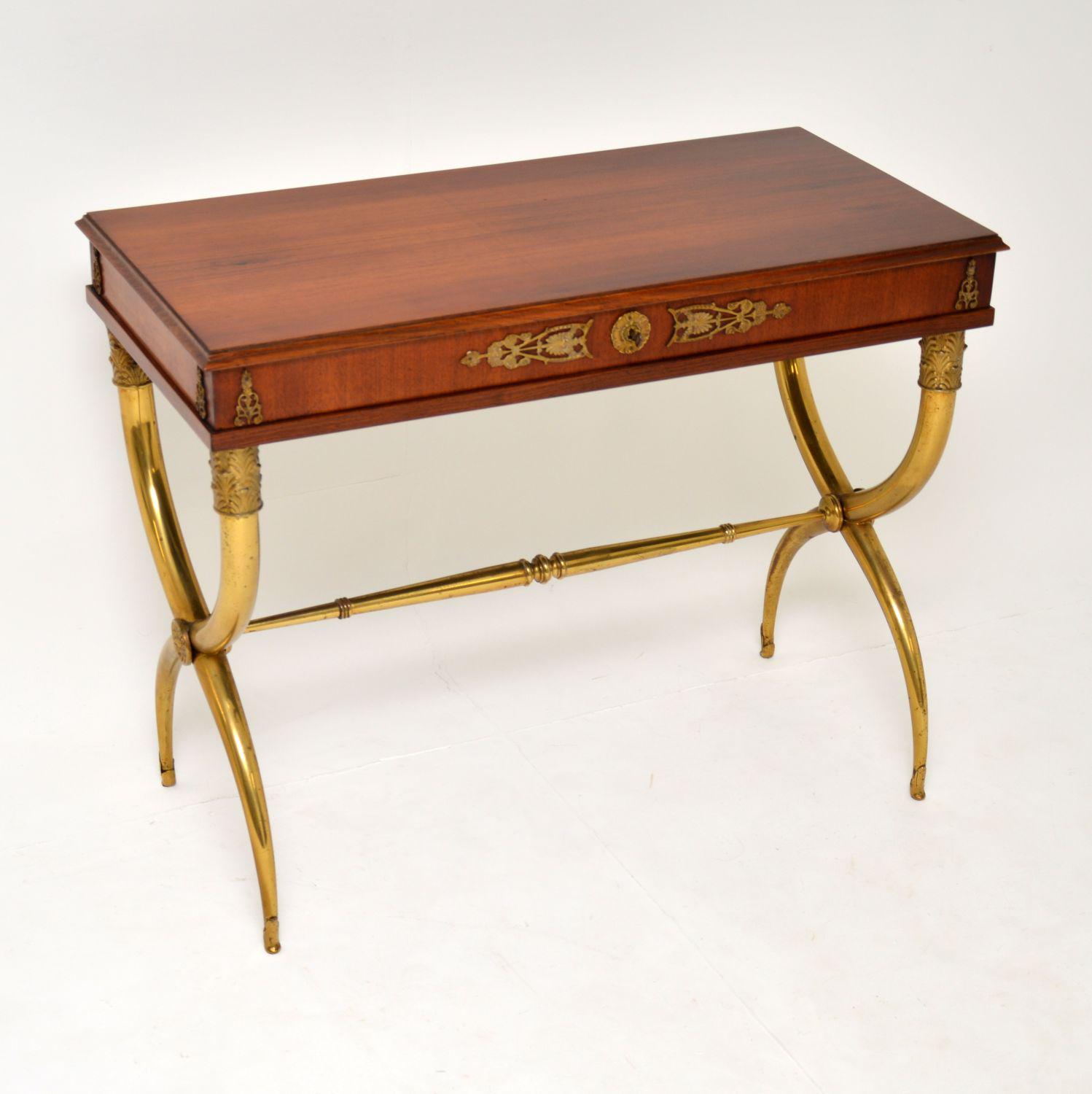 Antique Neoclassical Walnut & Brass Writing / Side Table