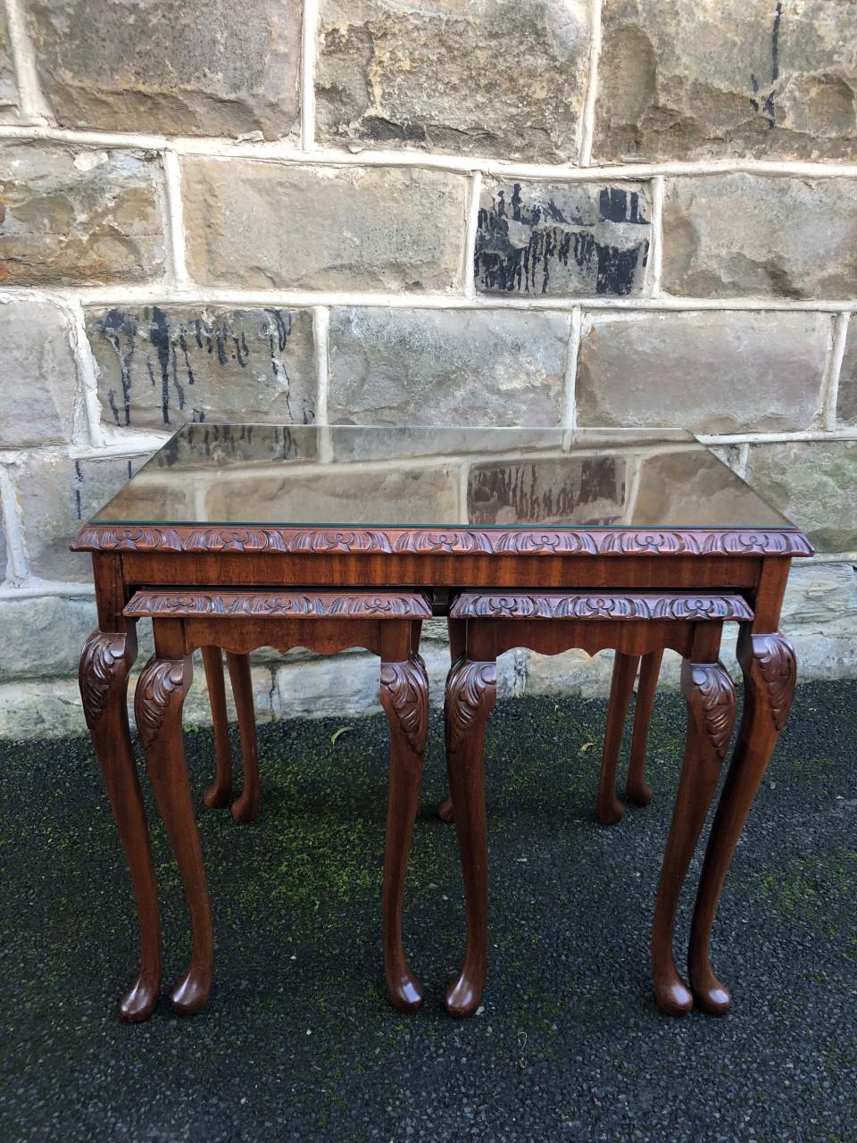 Antique Nest of 3 Walnut Tables