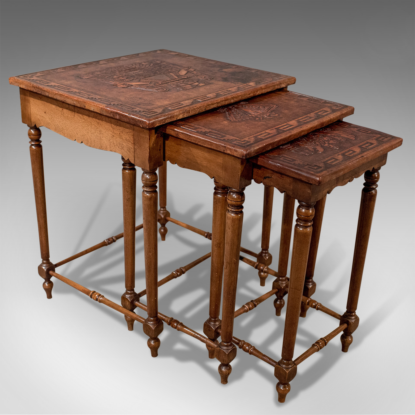 Antique Nest of Side Tables Embossed Bolivian Inca Leather Tops Edwardian c.1910