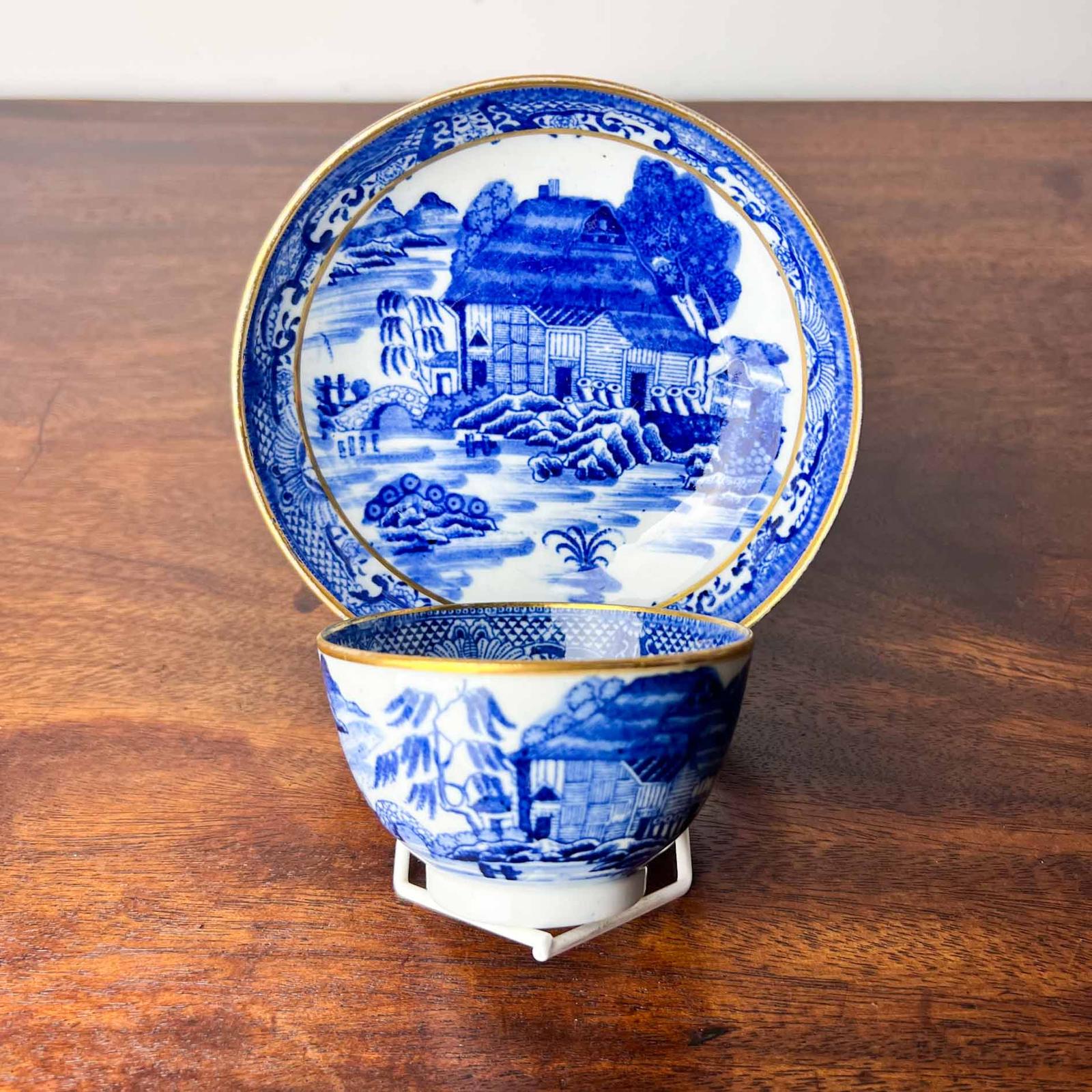 Antique New Hall 'Trench Mortar' Tea Bowl & Saucer