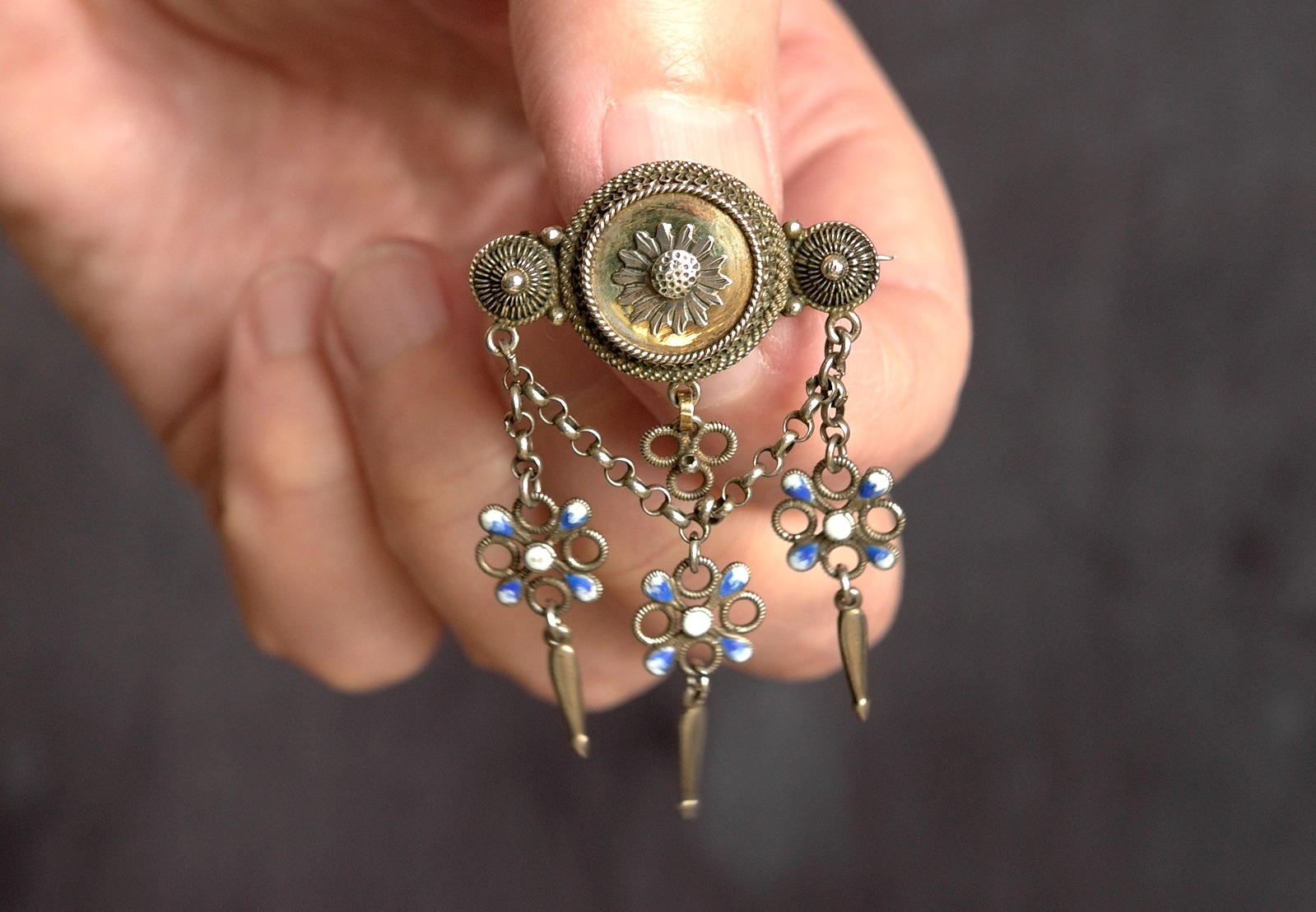 Antique Norwegian Silver & Enamel Solje Brooch by Clement Berg, Oslo c.1880