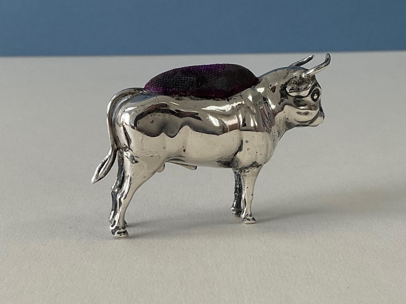 Antique Novelty Silver Pin Cushion - Bull