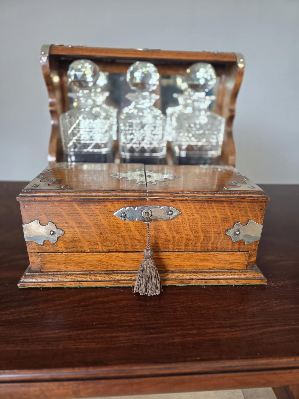 Antique Oak 3 Decanter Tantalus