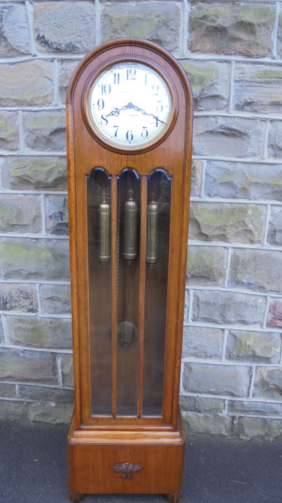Antique Oak 3 Weight Grandmother Clock W Greenwood & Sons