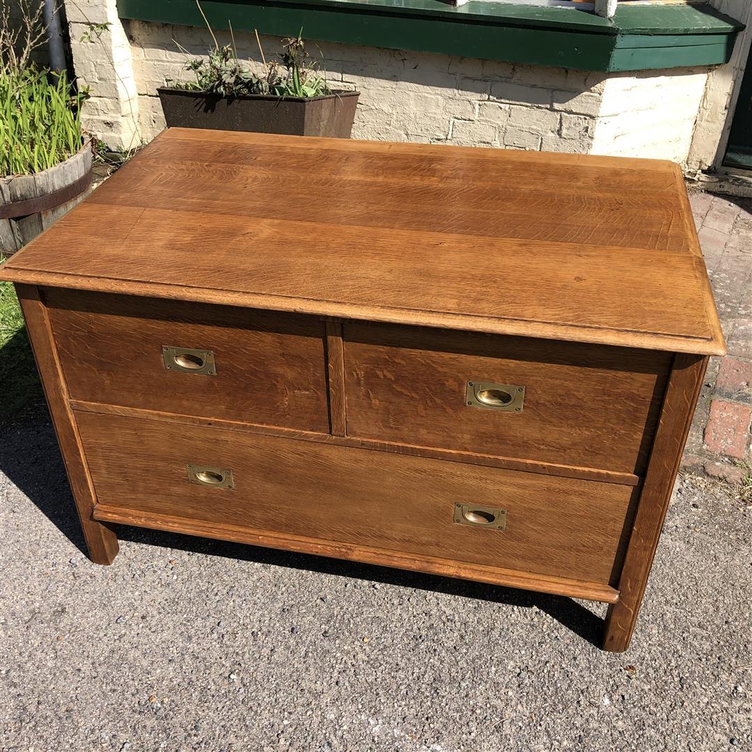 Antique Oak and Teak Chest of Drawers Large Low Deep