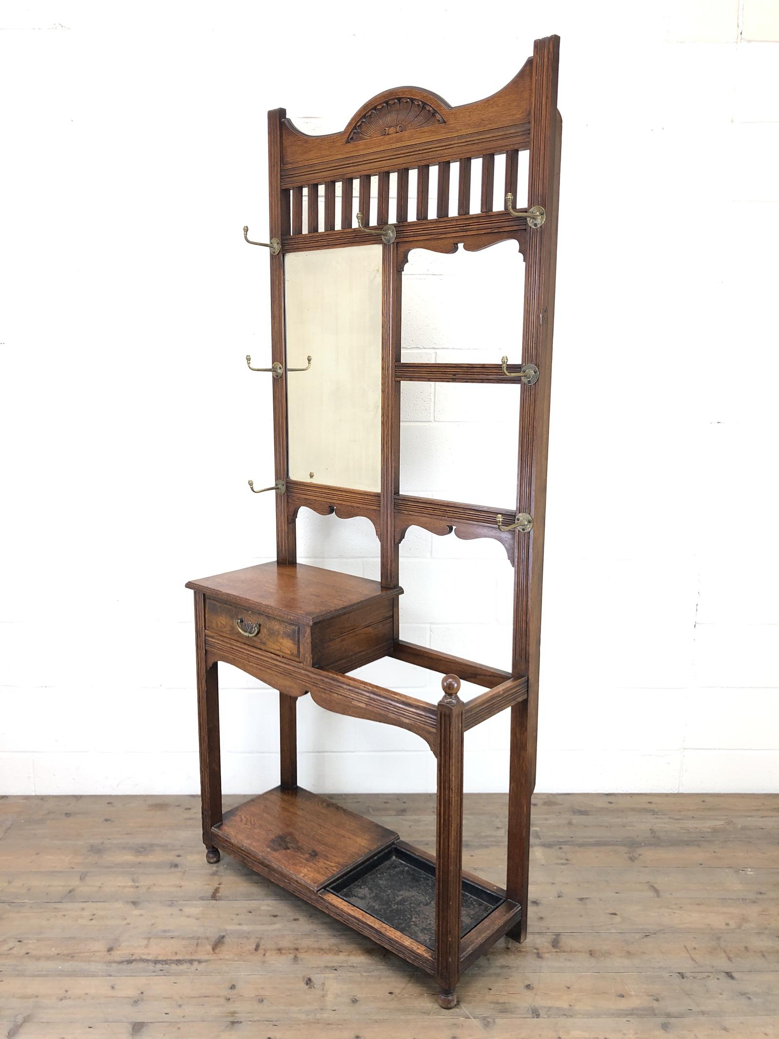 Antique Oak Arts & Crafts Mirrored Hall Stand (1 of 11)