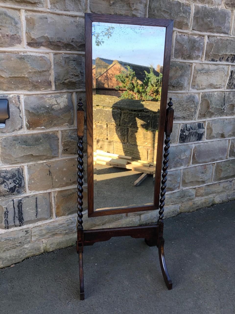 Antique Oak Barley Twist Cheval Dressing Mirror