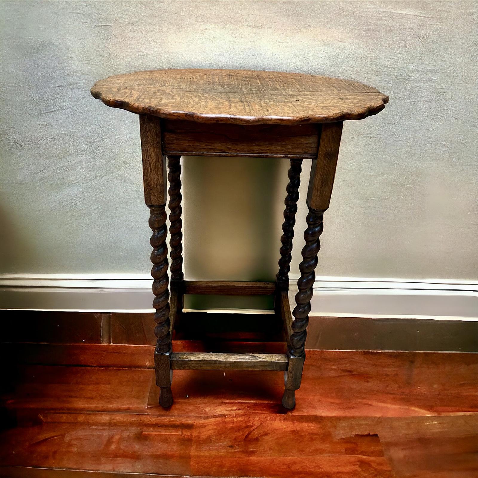 Antique Oak Barley Twist Side Occasional Oval Hall Table / Wine Table / Dated 1920s