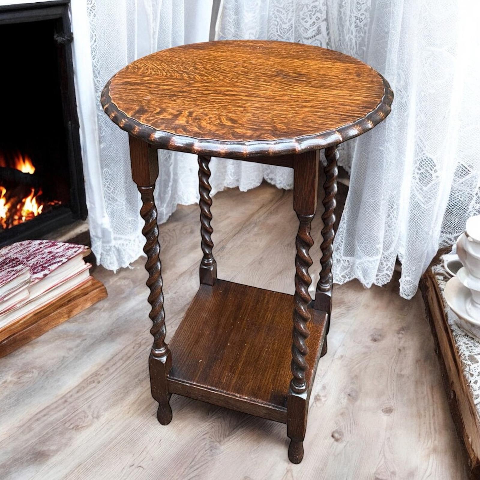 Antique Oak Barley Twist Side Occasional Round Hall Table / Dated 1920s