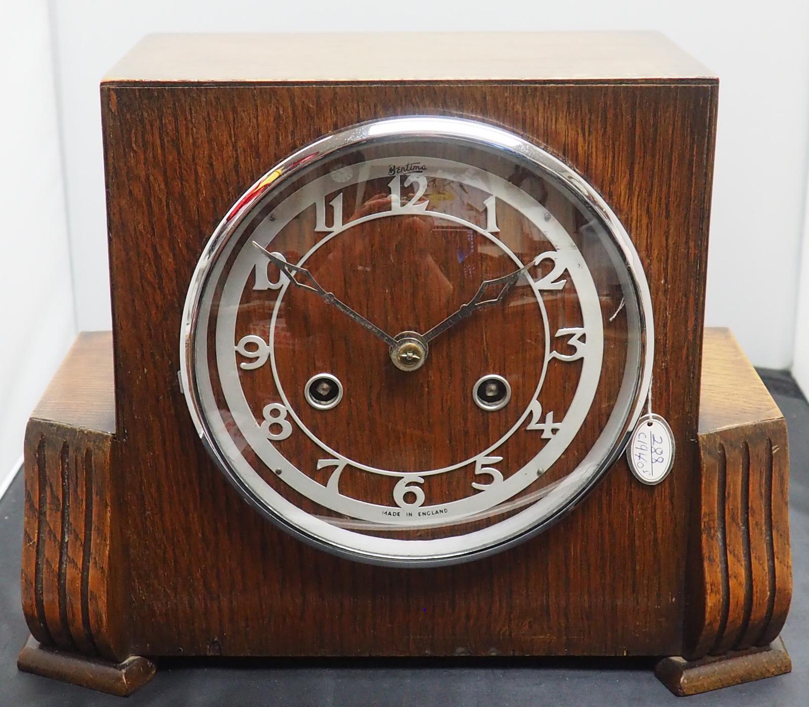 Antique Oak Bentima Art Deco 8 Day Striking Mantel Clock (1 of 9)