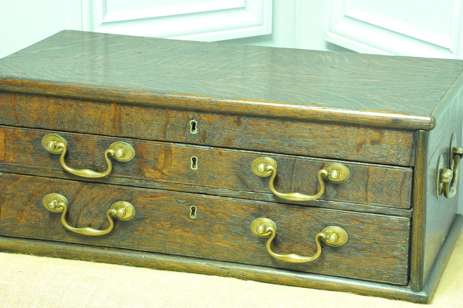 Antique Oak & Brass Bound Campaign Box with Drawers