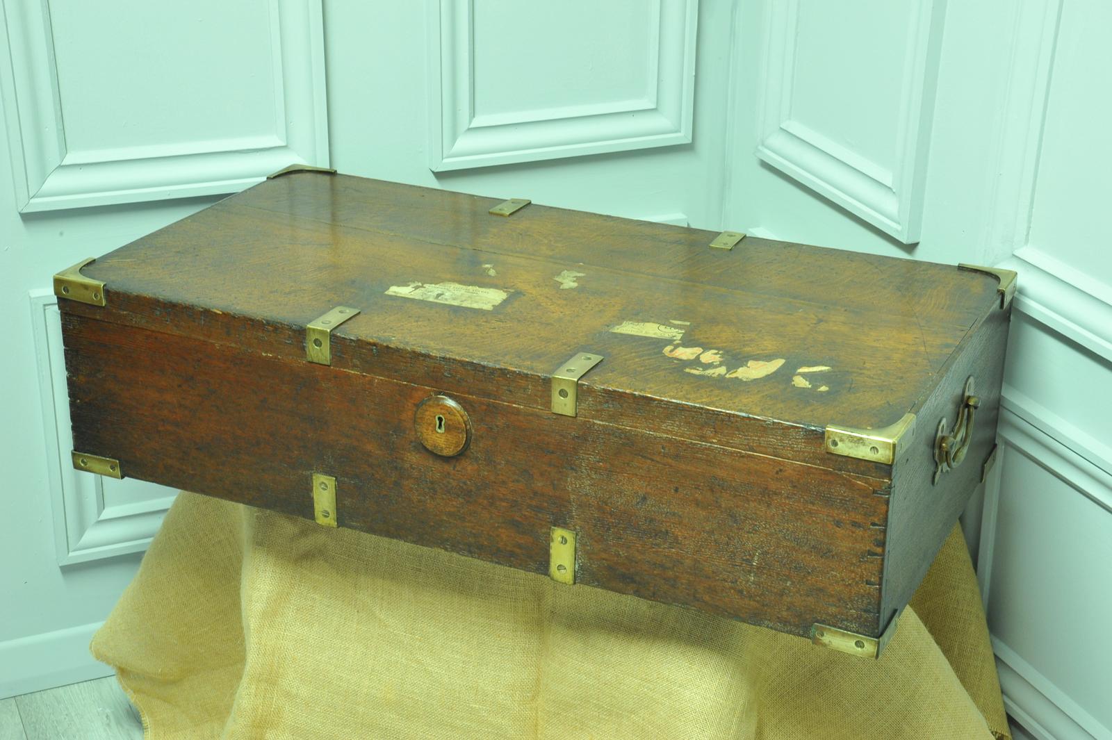Antique Oak & Brass Mounted Campaign Box