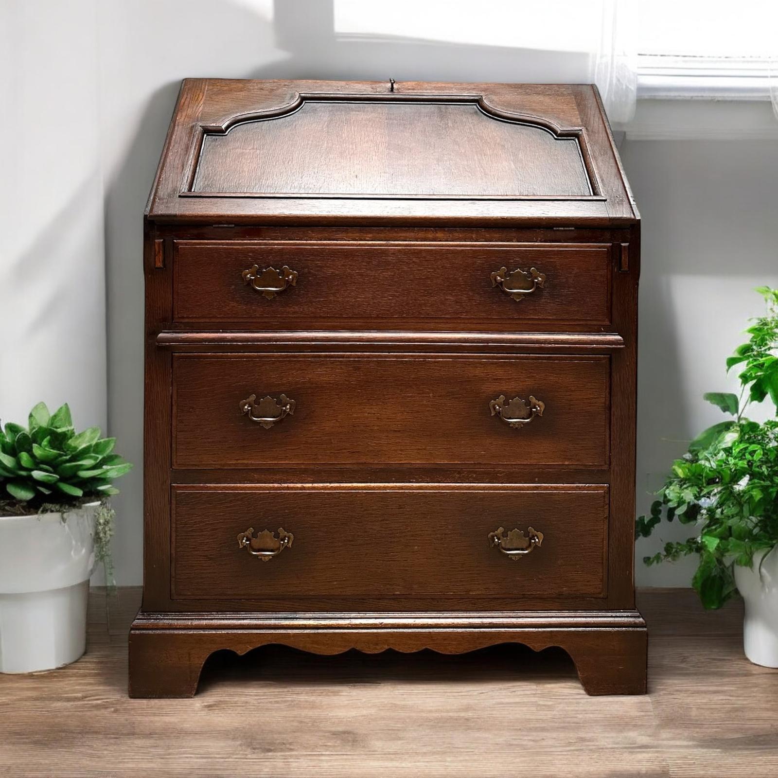 Antique Oak Bureau Desk With Drawers C1920 / Dark Brown