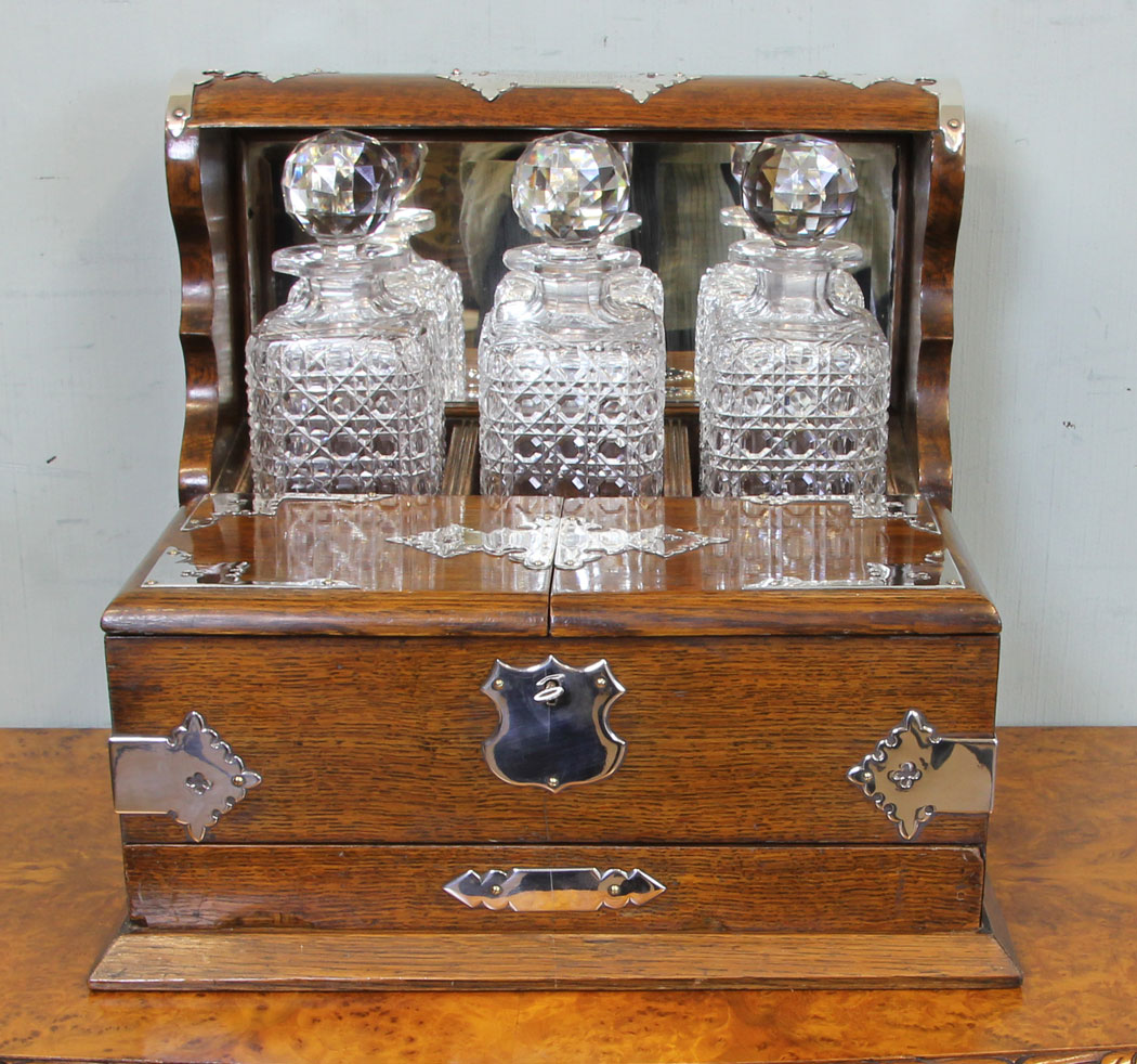 Antique Oak Case Three Bottle Tantalus (1 of 1)