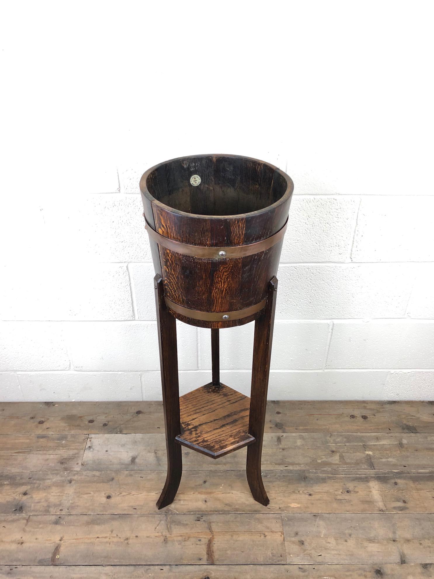 Antique Oak Coopered Jardinière Stand by Lister & Co (1 of 7)