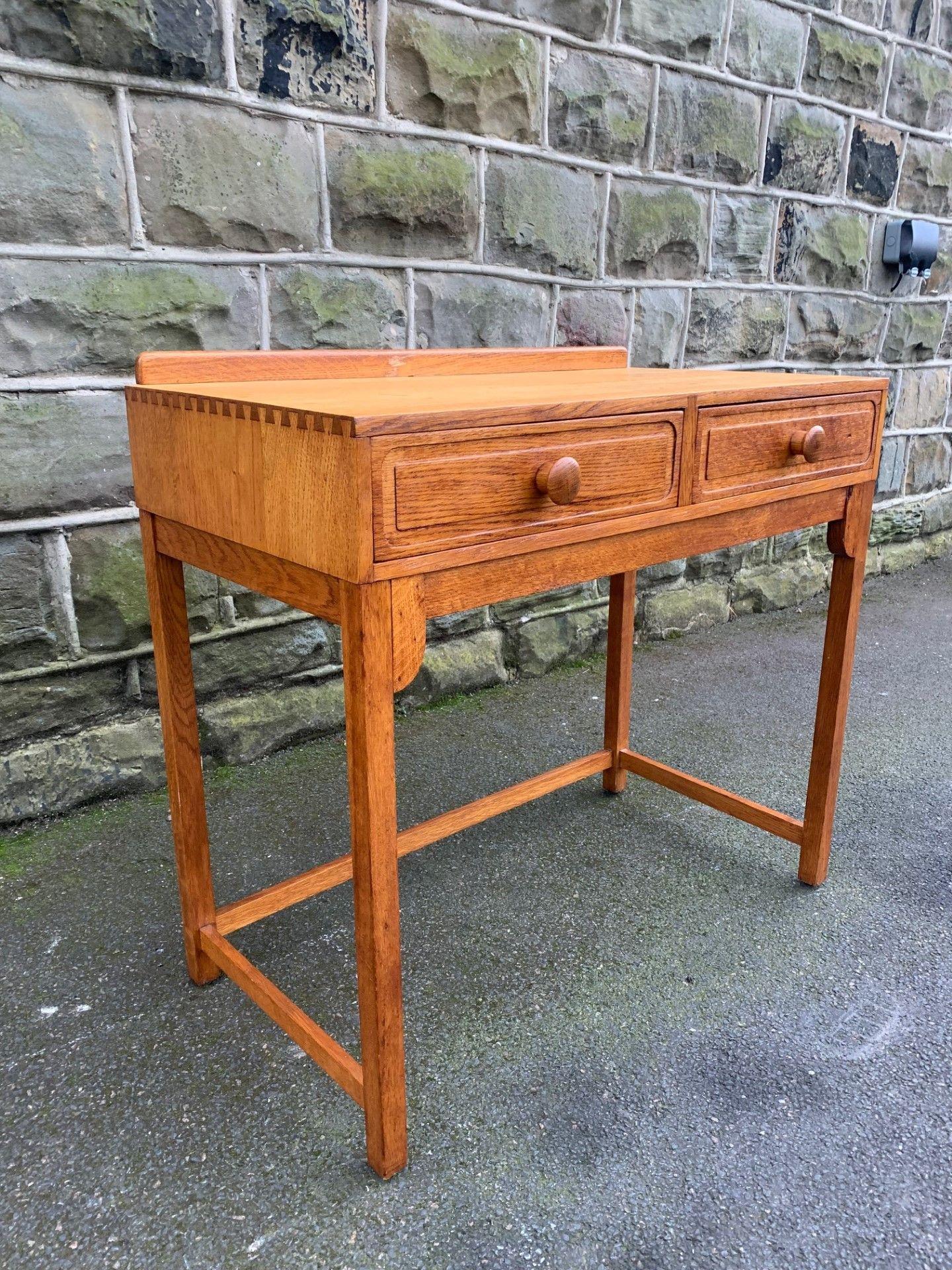 Antique Oak Cotswold School 2 Drawer Side Table