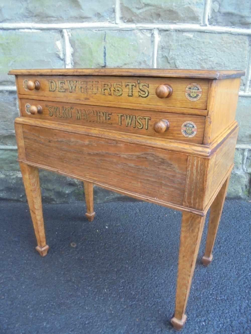 Antique Oak Dewhurst's Cotton Reel Cabinet on Stand
