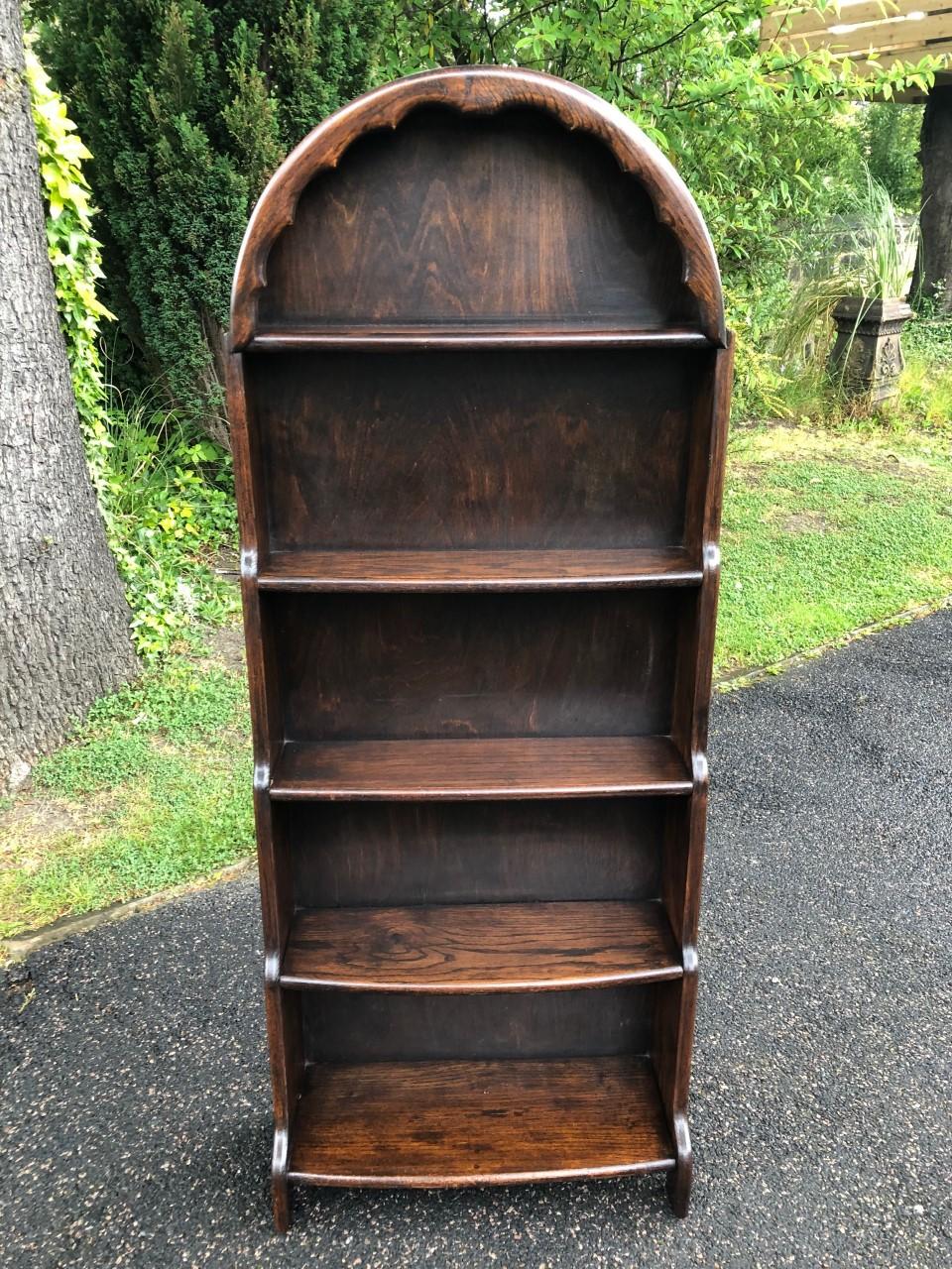 Antique Oak Domed Top Waterfall Open Bookcase