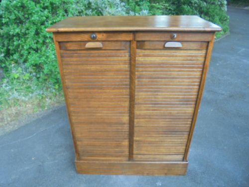 Antique Oak Double 18 Drawer Tambour Filing Cabinet / Music Cabinet c.1900