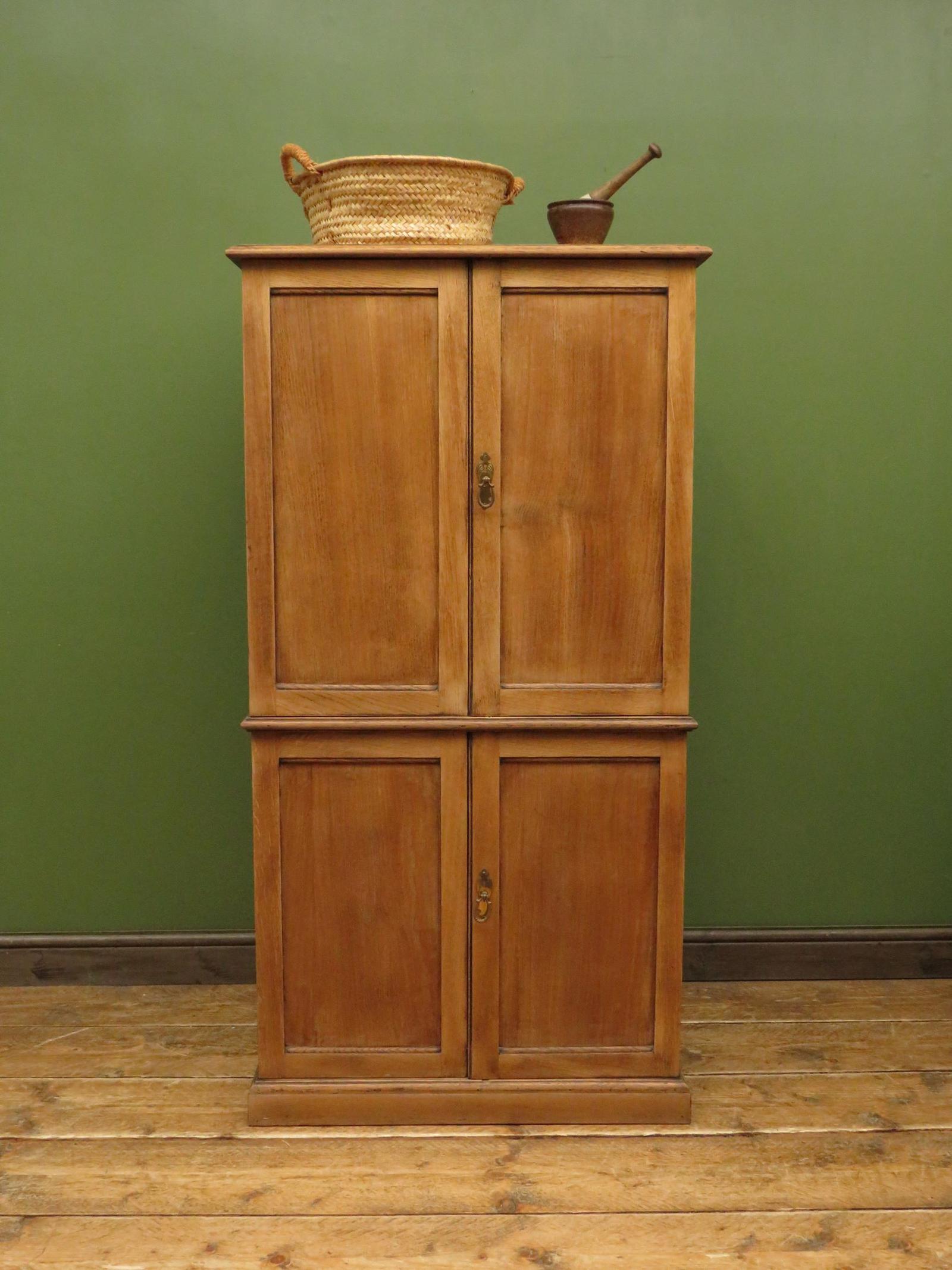 Antique Oak Double Cabinet, Narrow Larder Linen Cupboard, natural waxed oak