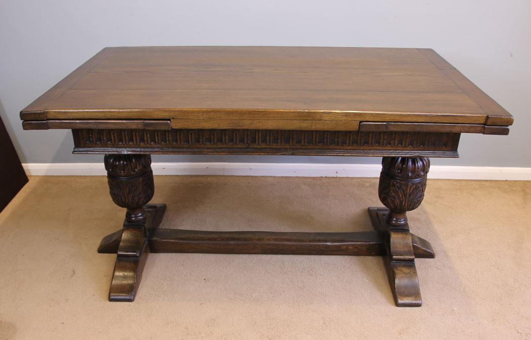 Antique Oak Draw Leaf Farmhouse Extending Refectory Dining Table