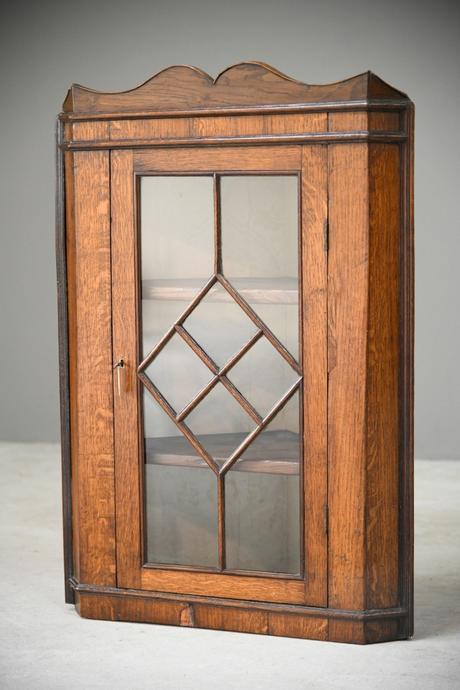 Antique Oak Glazed Corner Cupboard