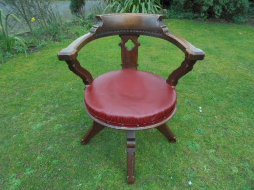 Antique Oak Gothic Revival Revolving Desk Chair c.1880