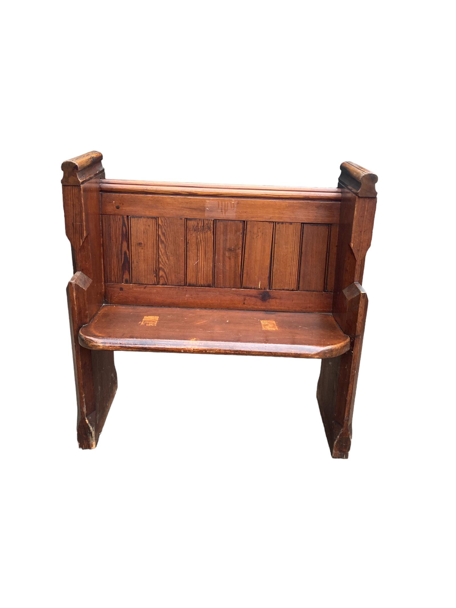 Antique Oak Gothic Style Church Pew in Original Conditionwith Numbers 44 on Side