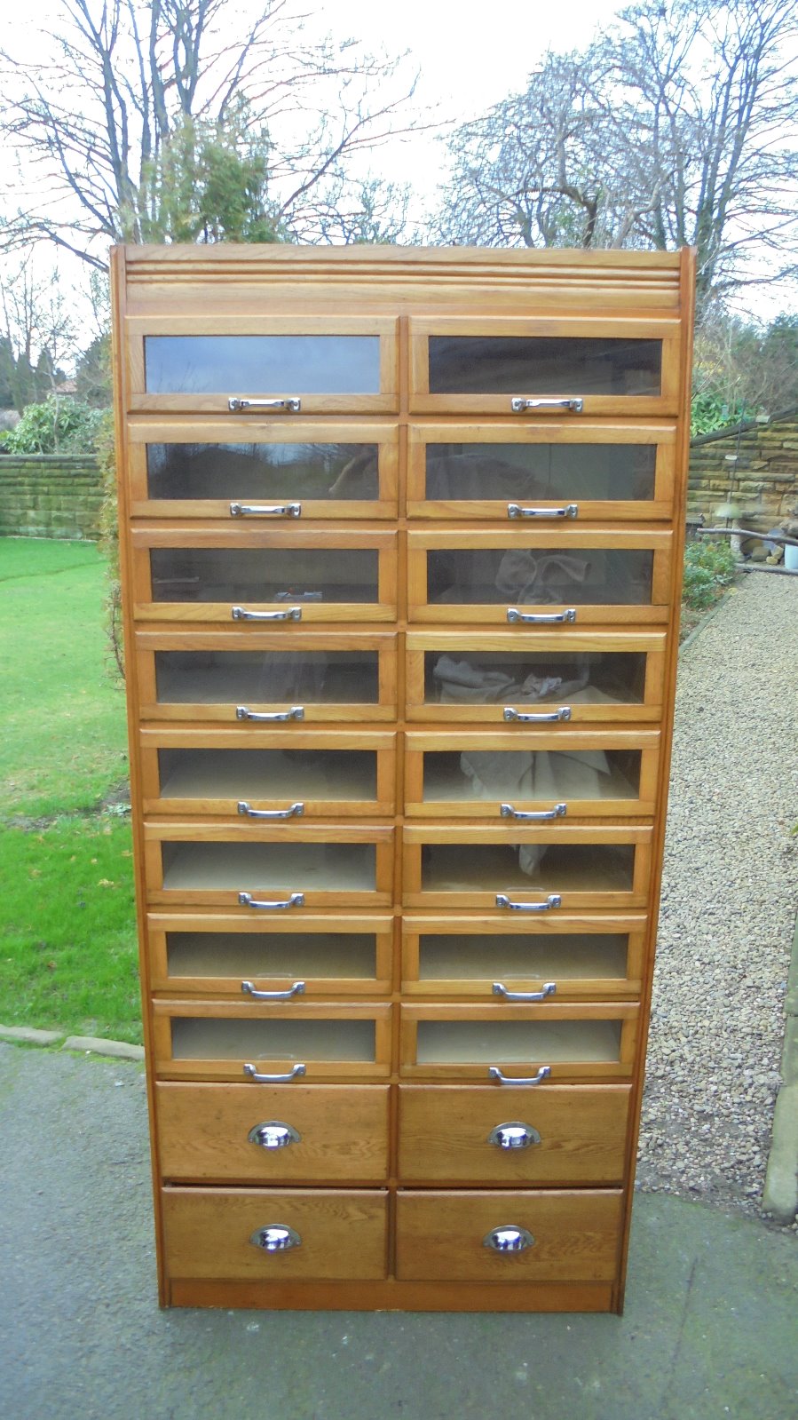 Antique Oak Haberdashery Shop Display Cabinet
