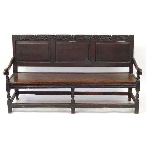 Antique Oak Hall Bench Carved with Foliage