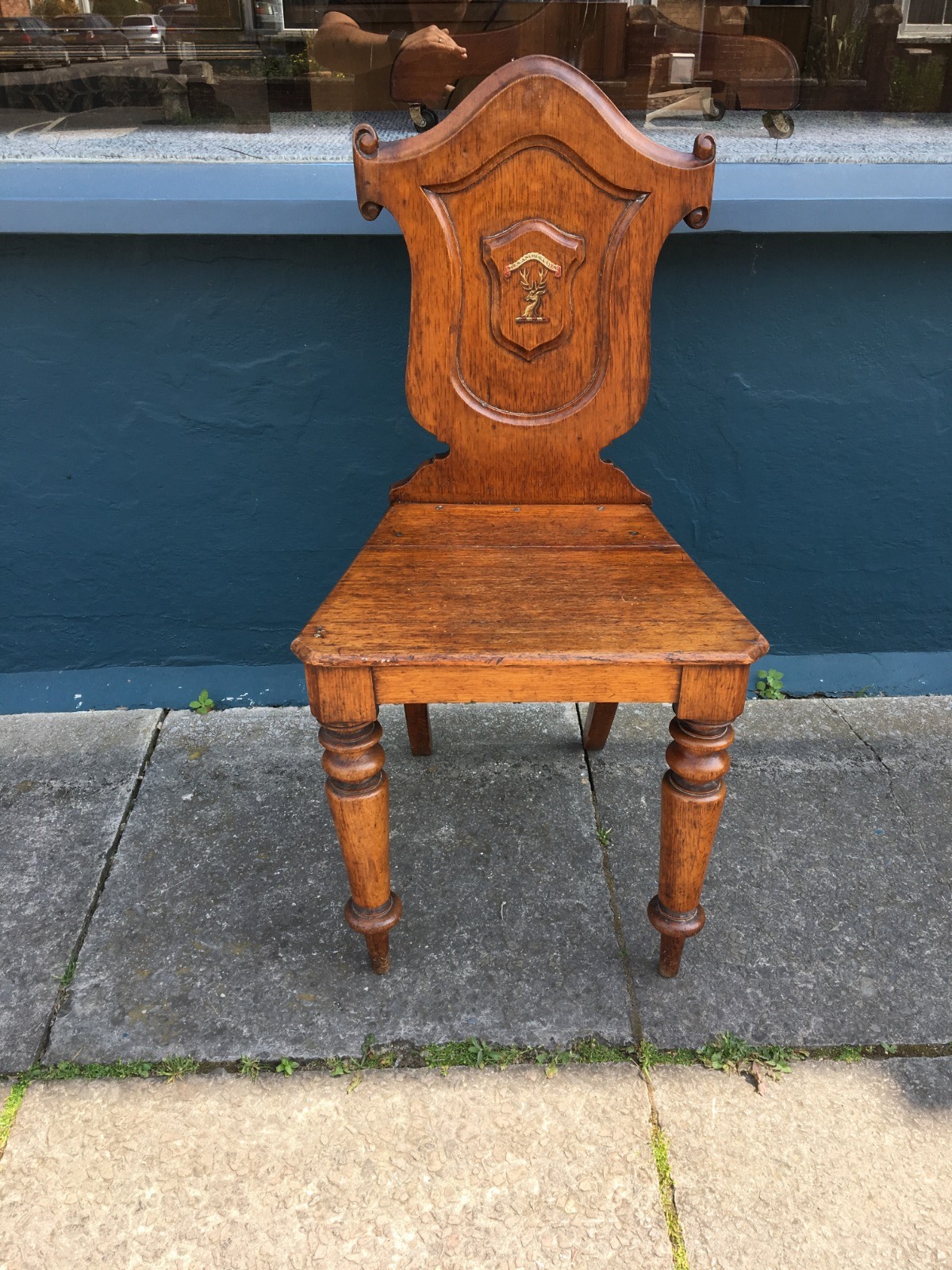 Antique Oak Hall Chair with Crest Back Panel 'Spes Anchora Vitae'