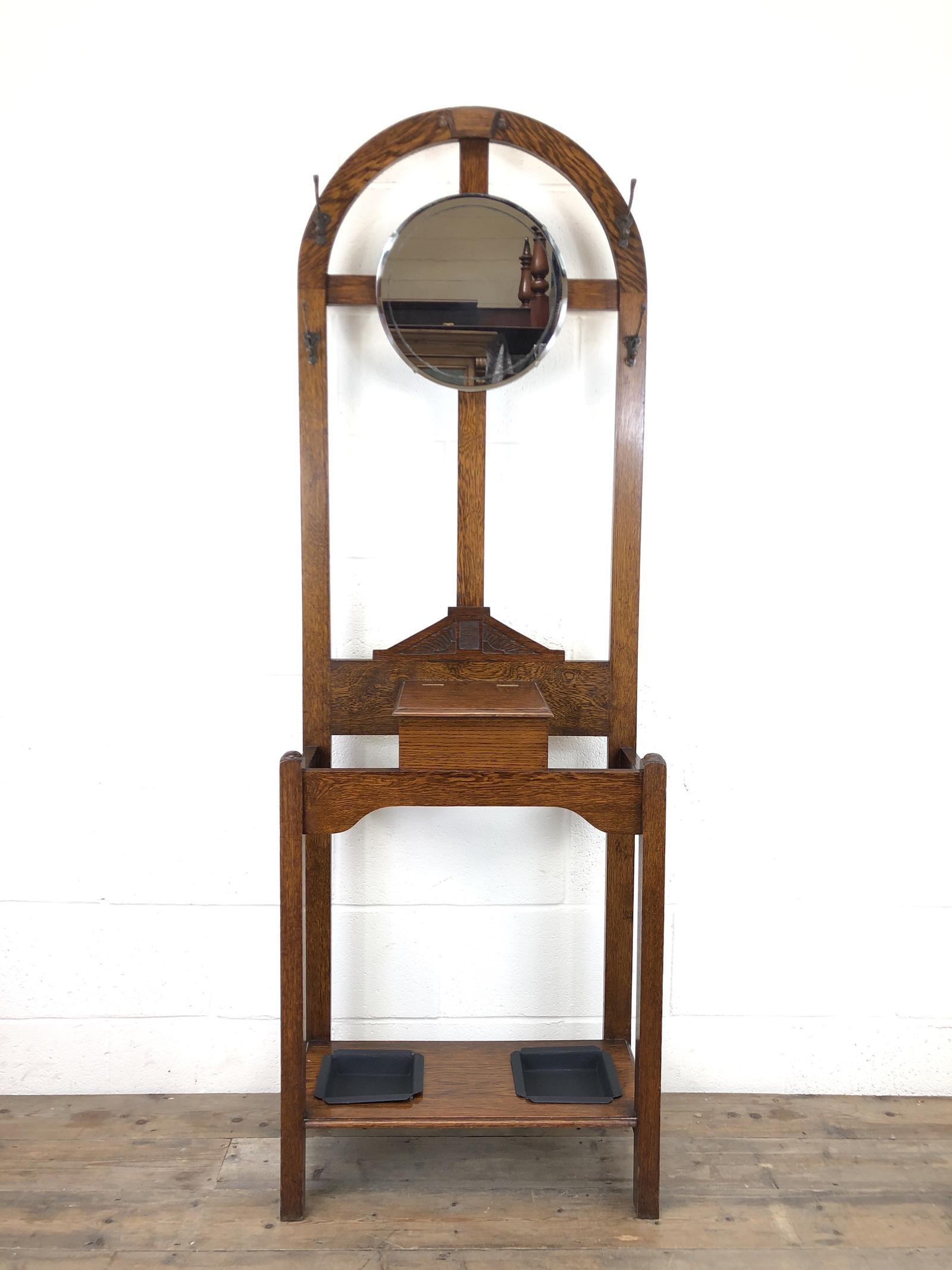 Antique Oak Hat & Coat Hall Stand with Mirror
