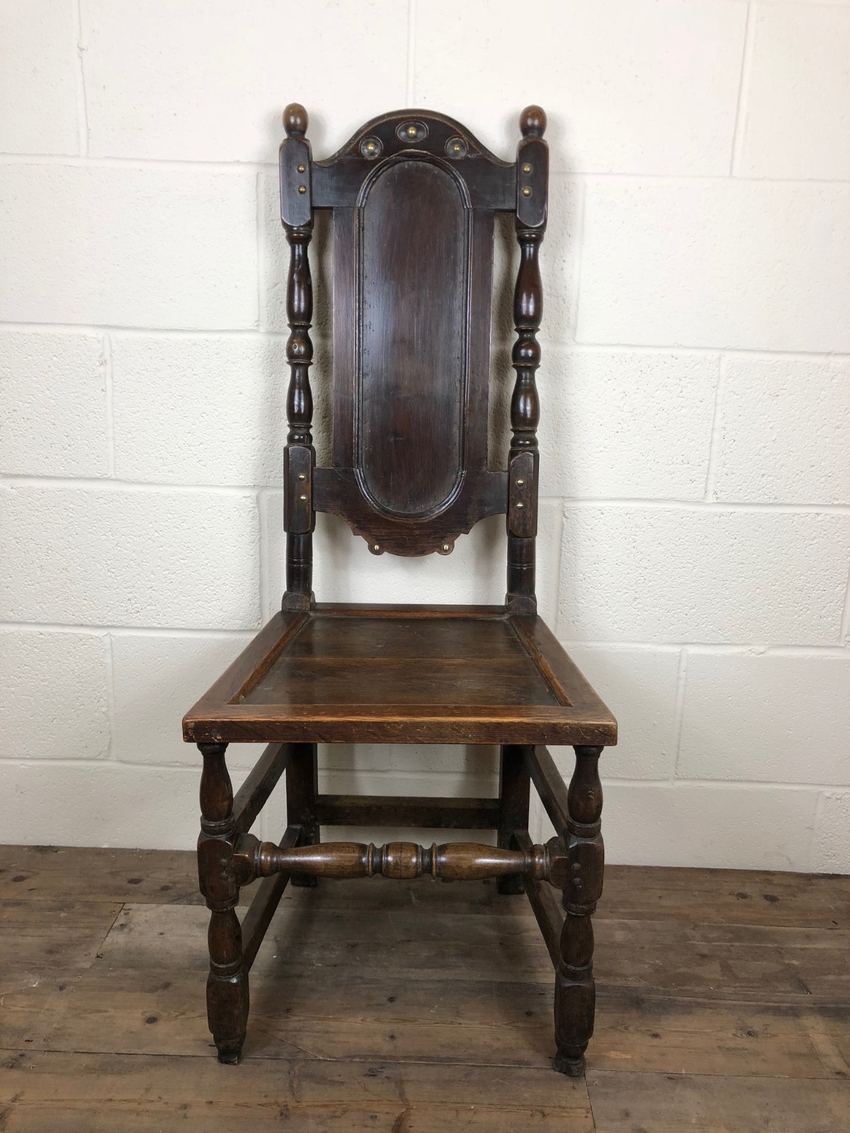 Antique Oak High Back Hall Chair with Brass Stud Detail