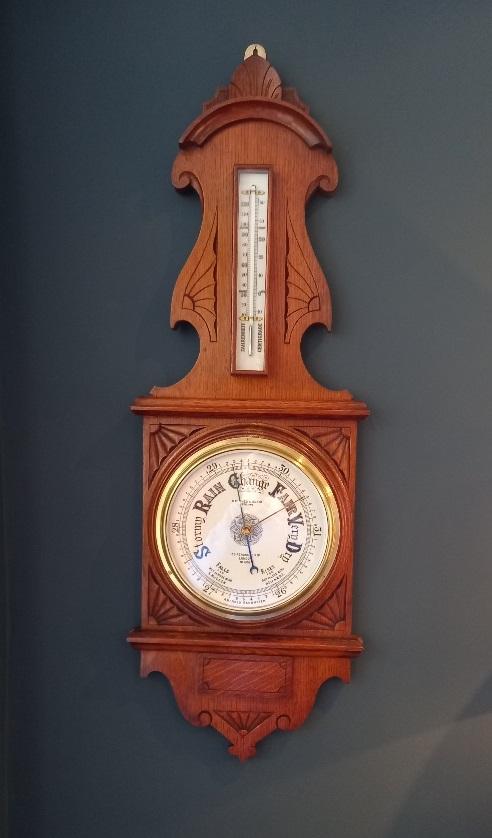 Antique Oak Hughes of London Banjo Barometer