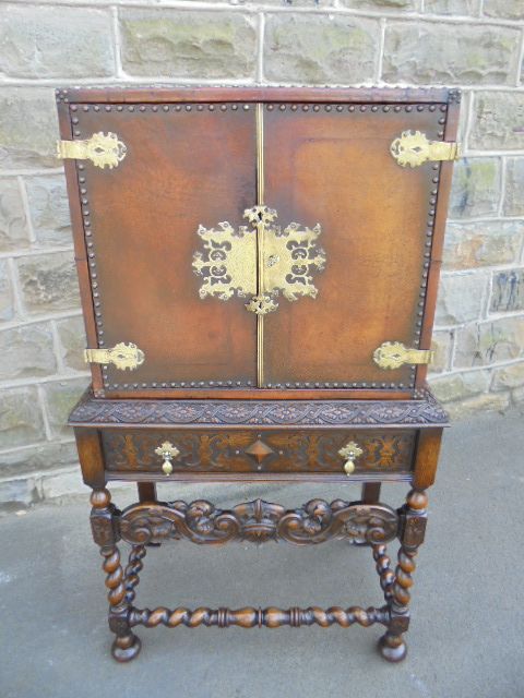 Antique Oak & Leather Bound Cocktail Cabinet / Drinks Cabinet c.1900 (1 of 1)