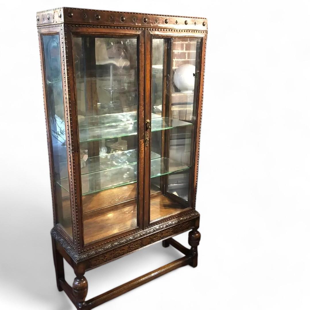 Antique Oak Leather Bound Display Cabinet (1 of 17)