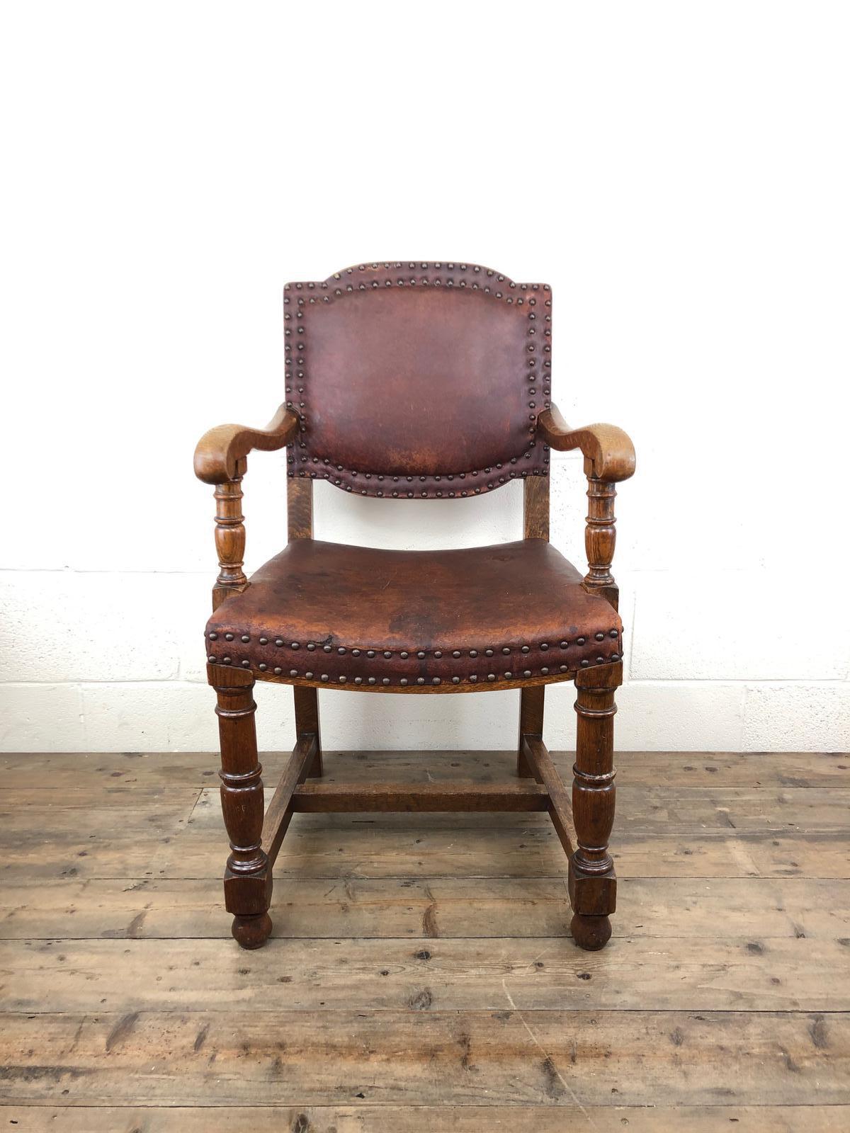 Antique Oak & Leather Studded Armchair (1 of 10)