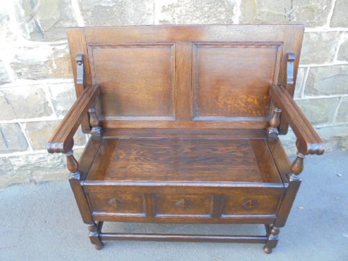Antique Oak Monks Bench / Hall Seat / Settle c.1900
