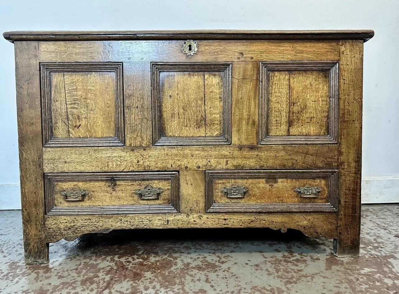 Antique Oak Mule Chest Coffer - Panelled Oak with Fitted Drawers c.1780