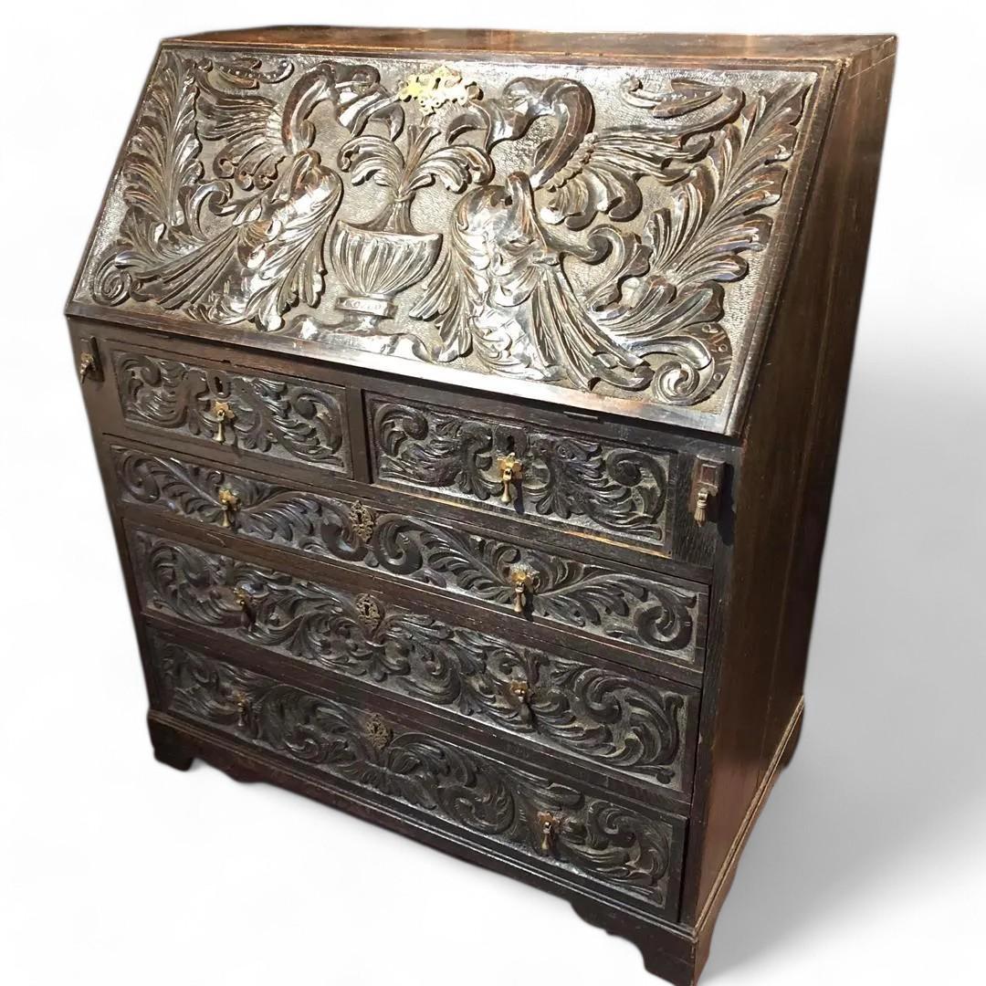 Antique Oak Ornately Carved Bureau Mid 19th Century (1 of 19)