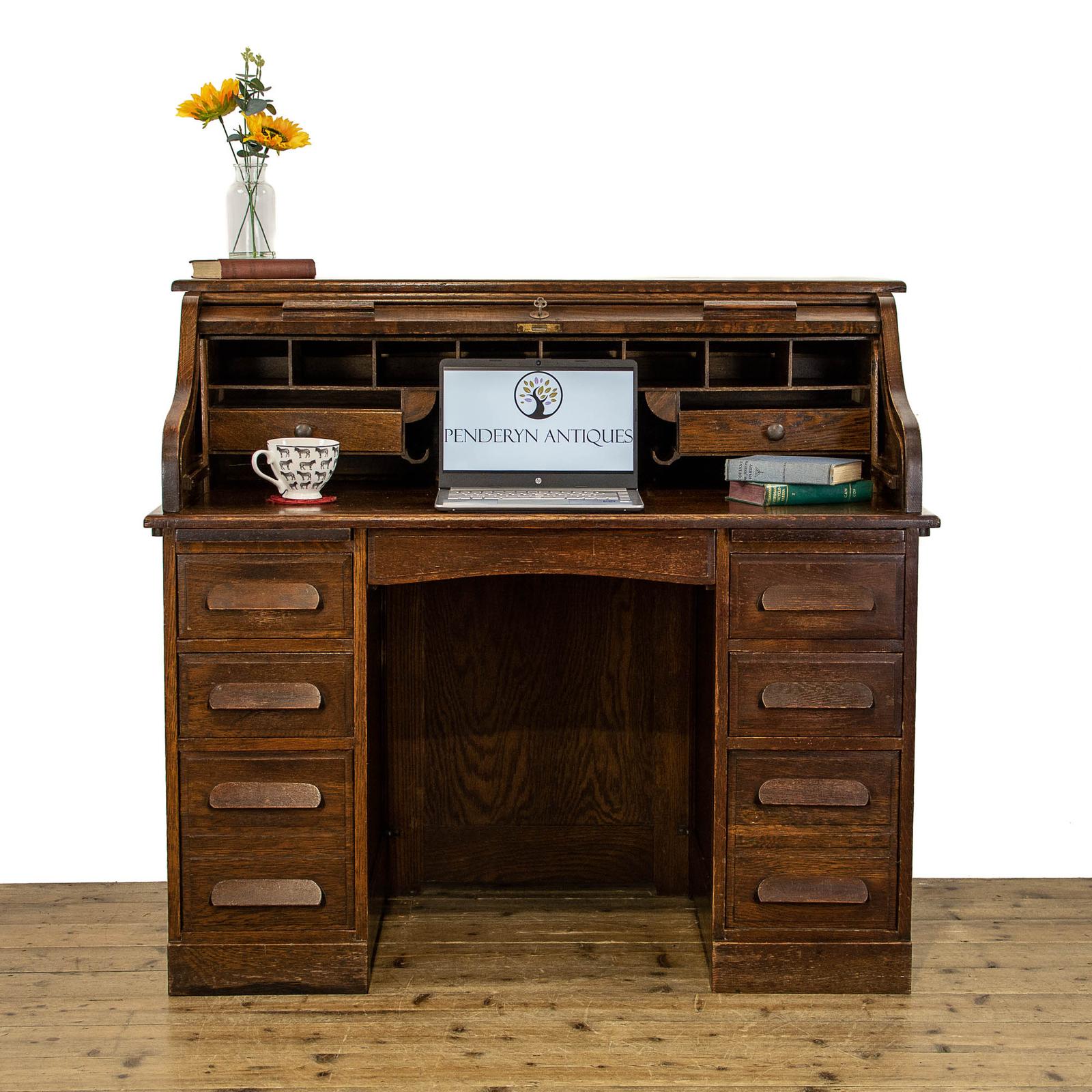 Antique Oak Pedestal Roll Top Desk (1 of 18)