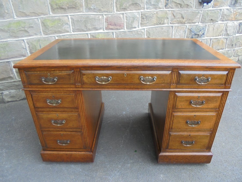 Antique Oak Pedestal Writing Desk by Maple & Co
