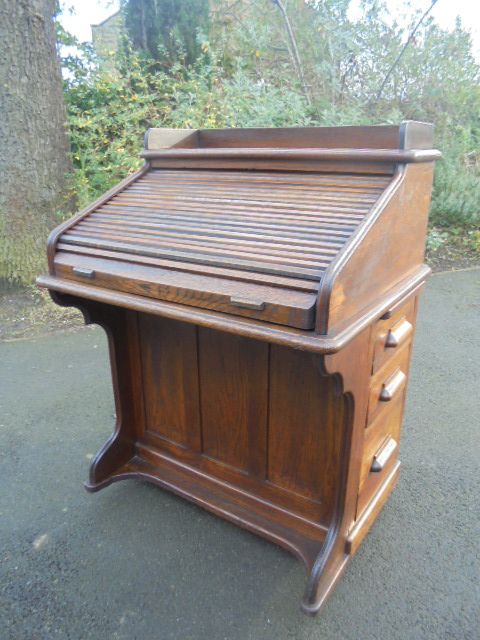 Antique Oak Roll Top Desk Writing Desk Davenport c.1900