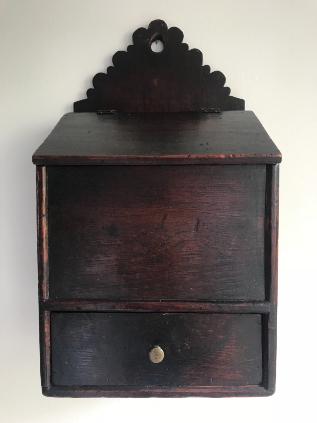 Antique Oak Salt Box / Candle Box with Drawer